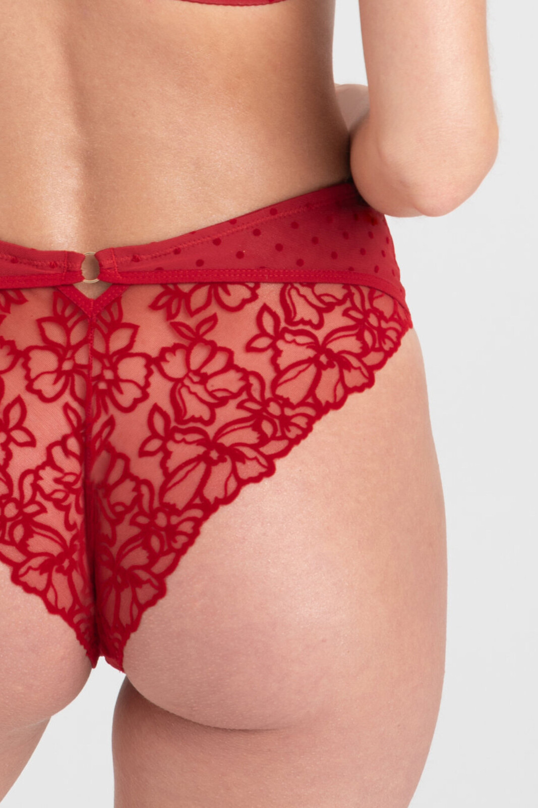 Трусики-бразилиана со слегка завышенной талией. Трусики чувственно обнажают ягодицы. Плотно прилегают к телу, не скатываются и не режут ягодицы. Ластовица изготовлена из 100% сертифицированного хлопка.