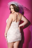 Мереживна сорочка нареченої з відкритим передом, на бретелях хрест-навхрест ззаду і з бічними розрізами. У комплекті ободок нареченої для фати.